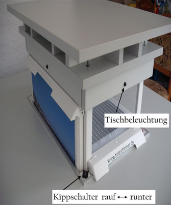 Der Hubmechanismus kann bei Stromausfall auch von Hand betrieben werden.